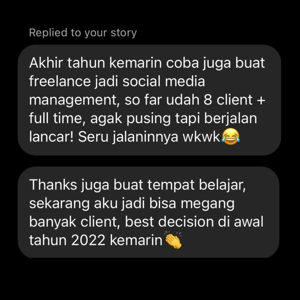 - Grup Khusus Member: tempat member bisa bertanya, berdiskusi, dan mendapat insight langsung dari sesama member dan mentor praktisi.